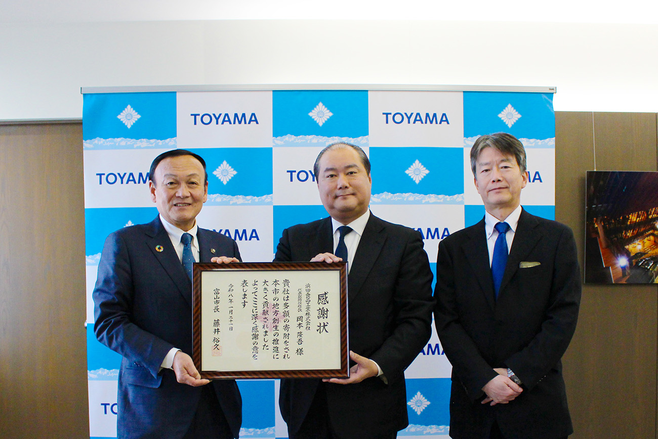 このたび、浜田食品工業株式会社様からのご支援、本市へのご期待をいただき誠にありがとうございます。